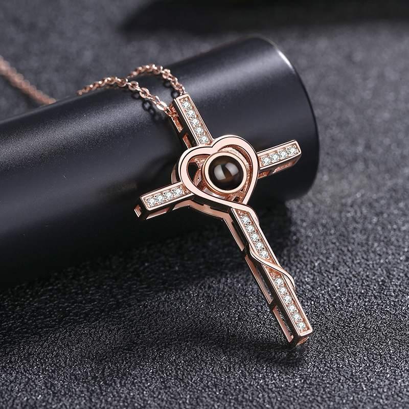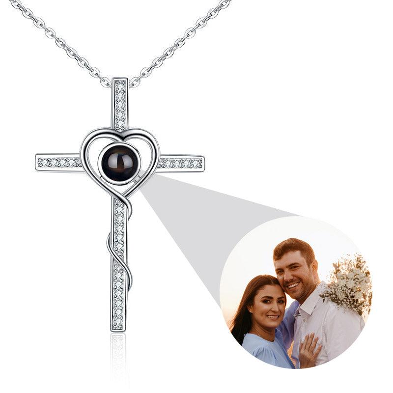 Personalized Projection Photo Necklace - Love Cross - Record My Love