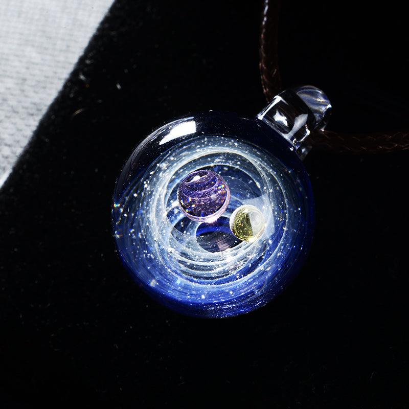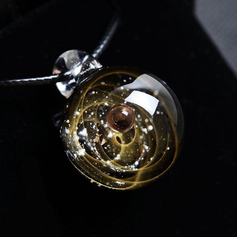 Avec ce collier, contempler la magnifique galaxie est littéralement dans la paume de votre main. Recréant l'univers entier dans une délicate boule de cristal, elle est elle-même un jeu de lumière et de couleur, de réalité et de magie.