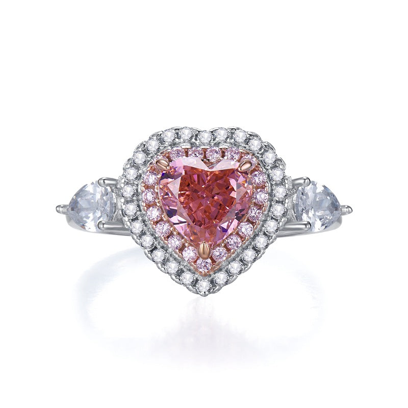 Simple Heart Shaped High Carbon Zirconia Silver Ring